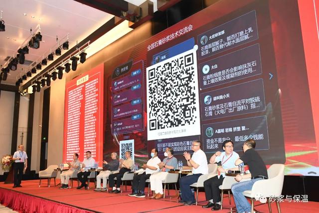 論壇邀請(qǐng)“石膏專家趙云龍教授”、“武漢理工大學(xué)——馬保國教授”、“山西中礦石膏規(guī)劃設(shè)計(jì)研究院院長——殷彤先生”、“南京工業(yè)大學(xué)——李東旭教授”、“山西省建材工業(yè)設(shè)計(jì)研究院石膏研究中心主任——滕朝暉先生”、“湖北智美堂石膏新技術(shù)有限公司技術(shù)總監(jiān)——楊家國先生”、“上海牛齊新材料科技有限公司技術(shù)總工——蘭明軒先生”、“山東天盛纖維素股份有限公司技術(shù)總工——趙守佳先生”、“摩泰克梅蒂斯(中國)科技有限公司產(chǎn)品總監(jiān)——吳漫天先生”、“南方路機(jī)——周煒先生”,共十位企業(yè)高工專家就坐于專家席,參會(huì)企業(yè)通過“石膏建材網(wǎng)”公眾號(hào)后臺(tái)將問題發(fā)送到大屏幕上與專家進(jìn)行互動(dòng)。